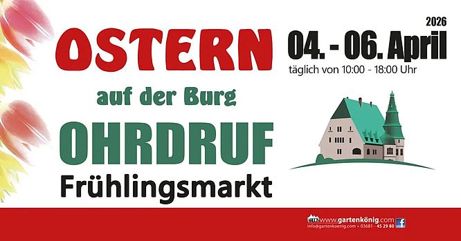 Alle weiteren Infos unter: https://gartenkoenig.com/event/oster-gartenmarkt-burg-park-ohrdruf/