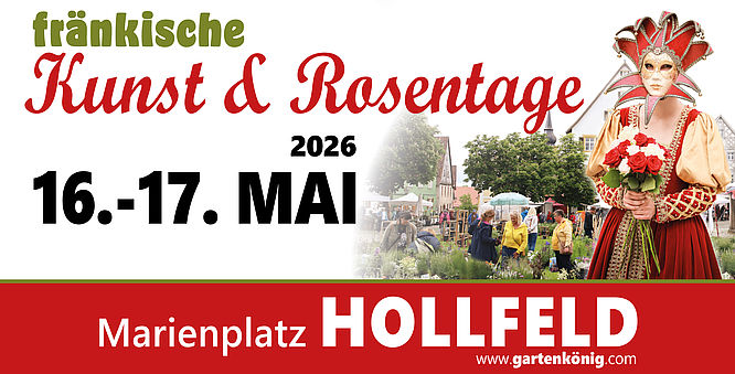 Ab diesem Jahr sind sie neu im Jahresplan von Gartenkönig, der nun auch die Organisation der traditionsreichen Veranstaltung übernimmt. Austragungsort ist der Marienplatz in Hollfeld, ein malerischer Platz im Herzen des romantischen Städtchens. Umgeben von historischen Fachwerkhäusern entsteht hier eine ganz besondere, beinahe märchenhafte Atmosphäre, die den perfekten Rahmen für Kunst, Rosen und Gartenkultur bietet.