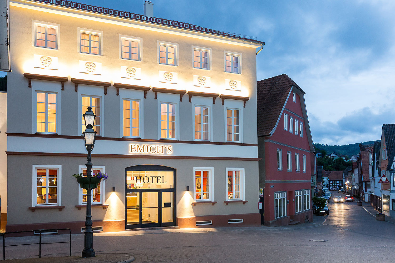 Das EMICH’S Hotel liegt inmitten der Altstadt von Amorbach und verbindet historischen Charme mit modernem Komfort.